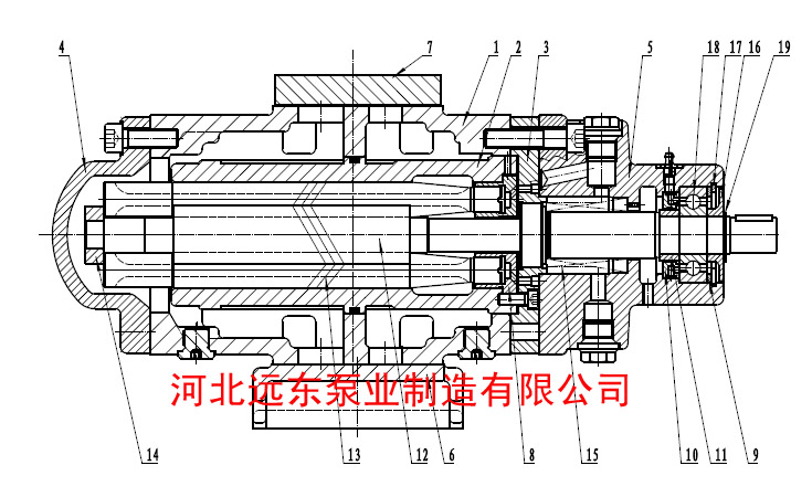 1.泵體 2.襯套 3.前蓋 4.后蓋 5.填料箱 6.泵底腳 7.蓋板 8.平衡套 9.支撐墊 10.潤(rùn)滑環(huán) 11.間隔套
